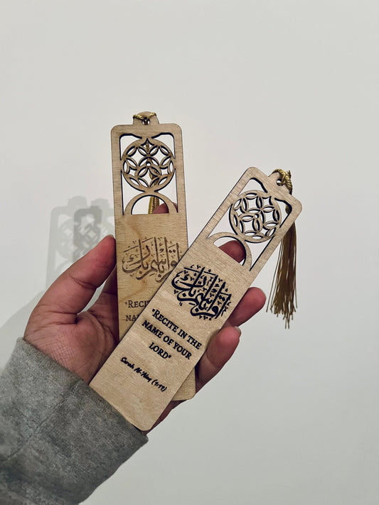 (SALE) Arabic Engraved Cut-out Bookmark (Surah Al-Alaq) with a Gold tassel